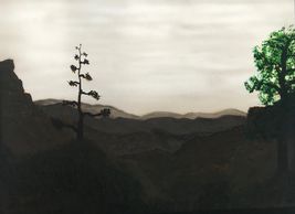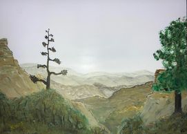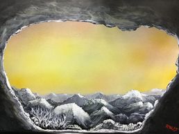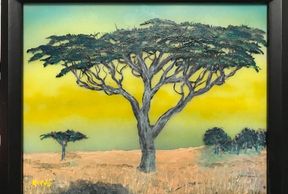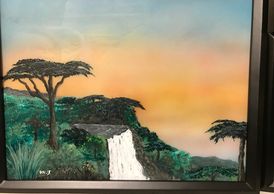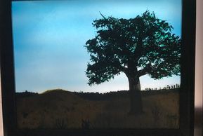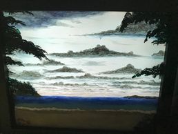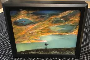 I use my own process to paint a combination of semi transparent and opaque paint on a specially treated transparent media, like glass, to enable use of light from both sides of the painting for an ever changing look to the final work. Using the ever changing light of day a windowsill makes a good showplace. I have also mounted lighting behind my pieces in shadow boxes for normal wall mounting.